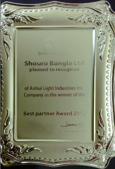 | 2013年01月 公司榮獲孟加拉客戶最佳合作伙伴稱號。 | |