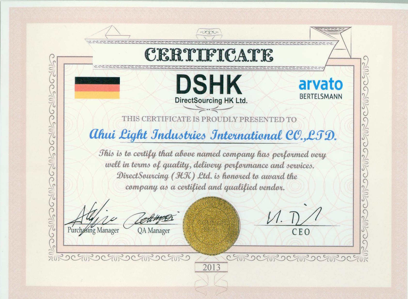 | 2013年04月 公司獲得德國貝塔斯曼“最佳供應商”榮譽稱號。 | ![]() |