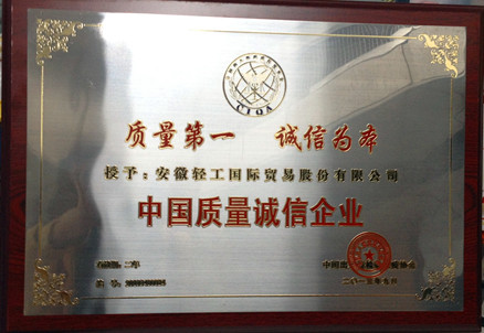 2010年11月 公司榮膺“中國質量誠信企業”光榮稱號