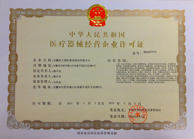 | 2014年03月 公司繼續取得“醫療器械經營許可證”。 | ![]() |
