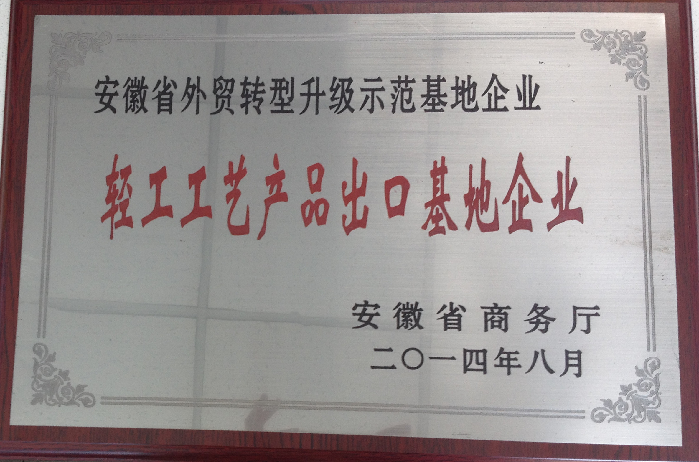 | 2014年12月 公司榮獲省商務廳:安徽省外貿轉型升級示范基地企業 | ![]() |