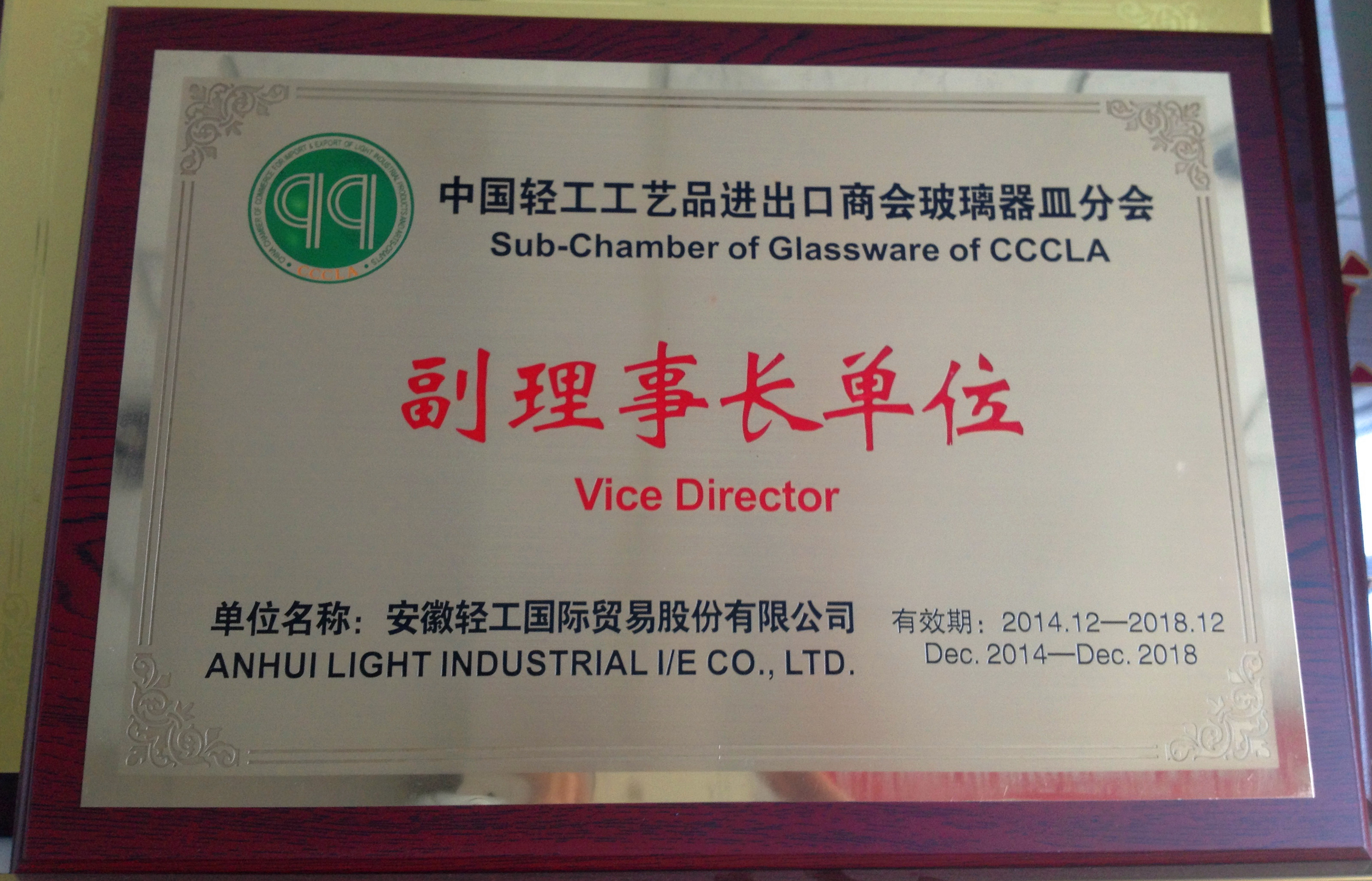 | 2015年02月 公司成為中國輕工工藝品進出口商會玻璃器皿分會副理事長單位 | ![]() |