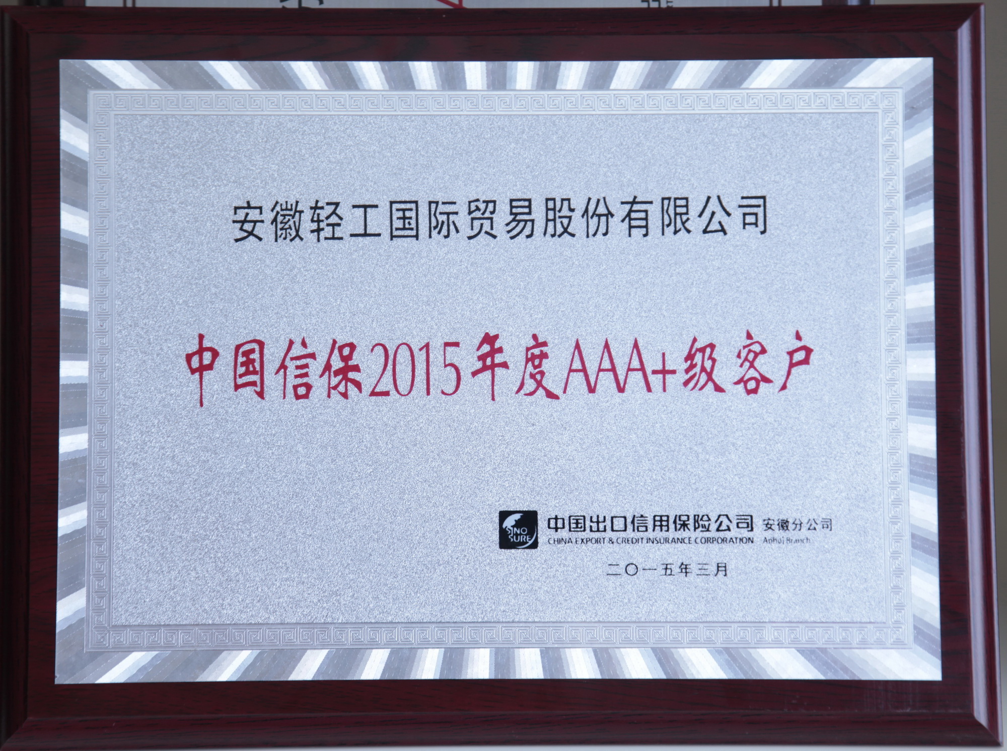 | 2015年07月 公司榮獲中國信保2015年度AAA+級客戶榮譽稱號 | |