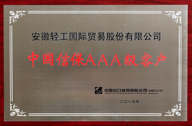 | 2017年11月,公司再次榮獲“中國信保AAA級客戶”稱號。 | ![]() |
