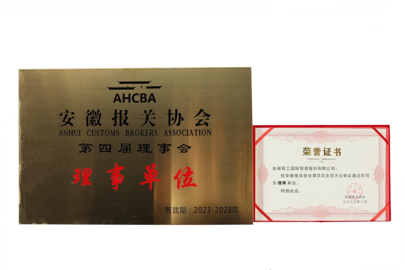| 2023年8月 公司成為安徽報關協會第四屆理事會理事單位。 | ![]() |