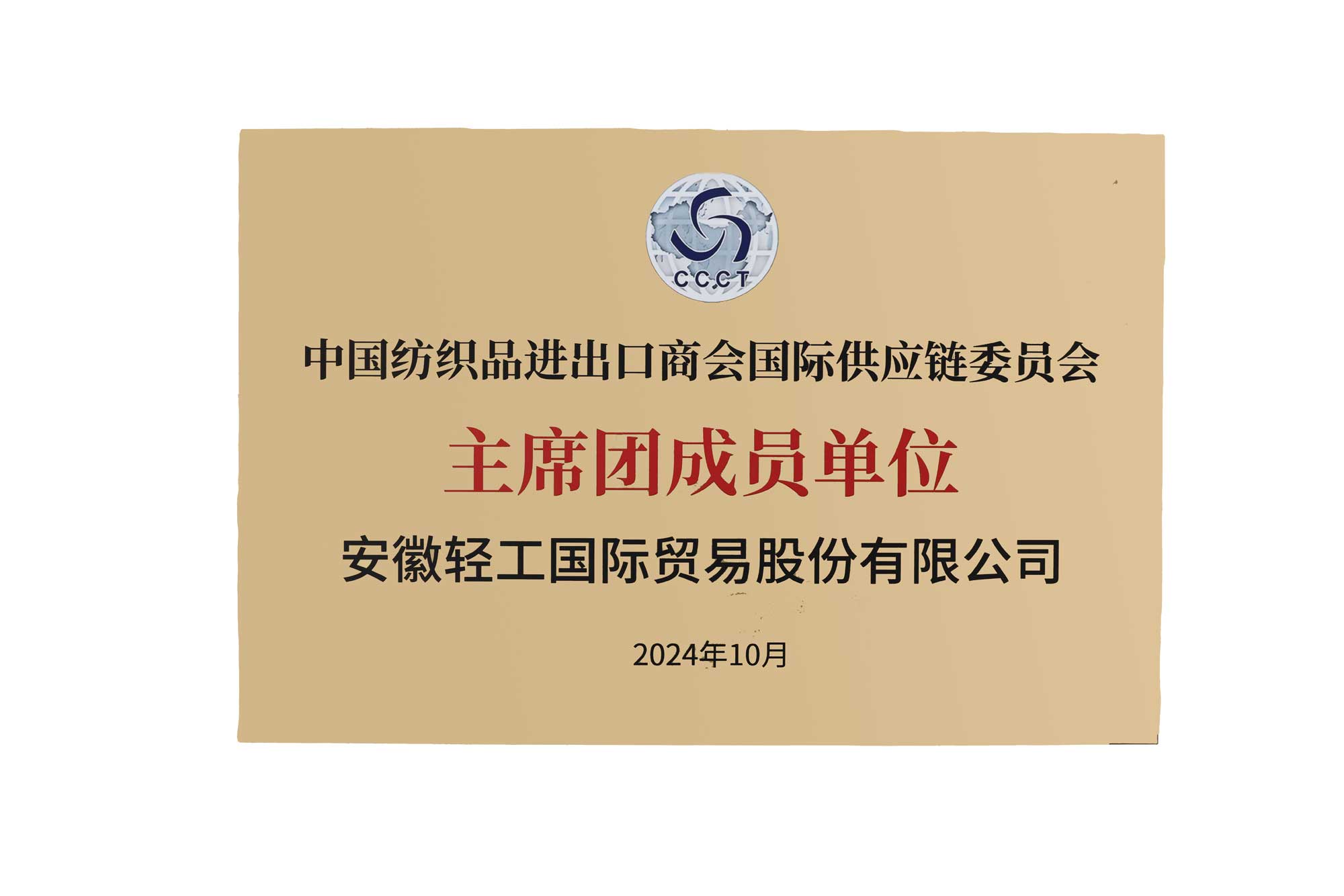 | 2024年10月 公司成為中國紡織品進出口商會國際供應鏈委員會主席團成員單位。 | ![]() |