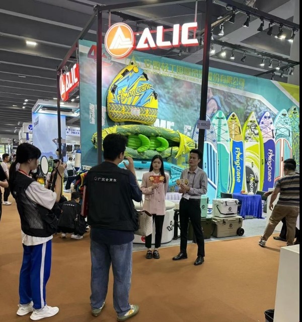 “好寶好妮探廣交”連線展示系列活動源自2021年。廣交會主播們化身勤勞的小蜜蜂“好寶”、“好妮”,帶領(lǐng)境外粉絲沉浸式體驗廣交會,向其展示中國優(yōu)質(zhì)出口企業(yè)和產(chǎn)品,有效促進供采互動。每屆活動吸引超過140萬境外采購商在線觀看,展客商紛紛給予好評。本屆廣交會上,體育攤位再次受邀接受采訪,戶外用品部張世宇憑借豐富的產(chǎn)品知識、流利的英語、優(yōu)秀的外在形象,透過鏡頭向境外采購商介紹充氣滑水板。