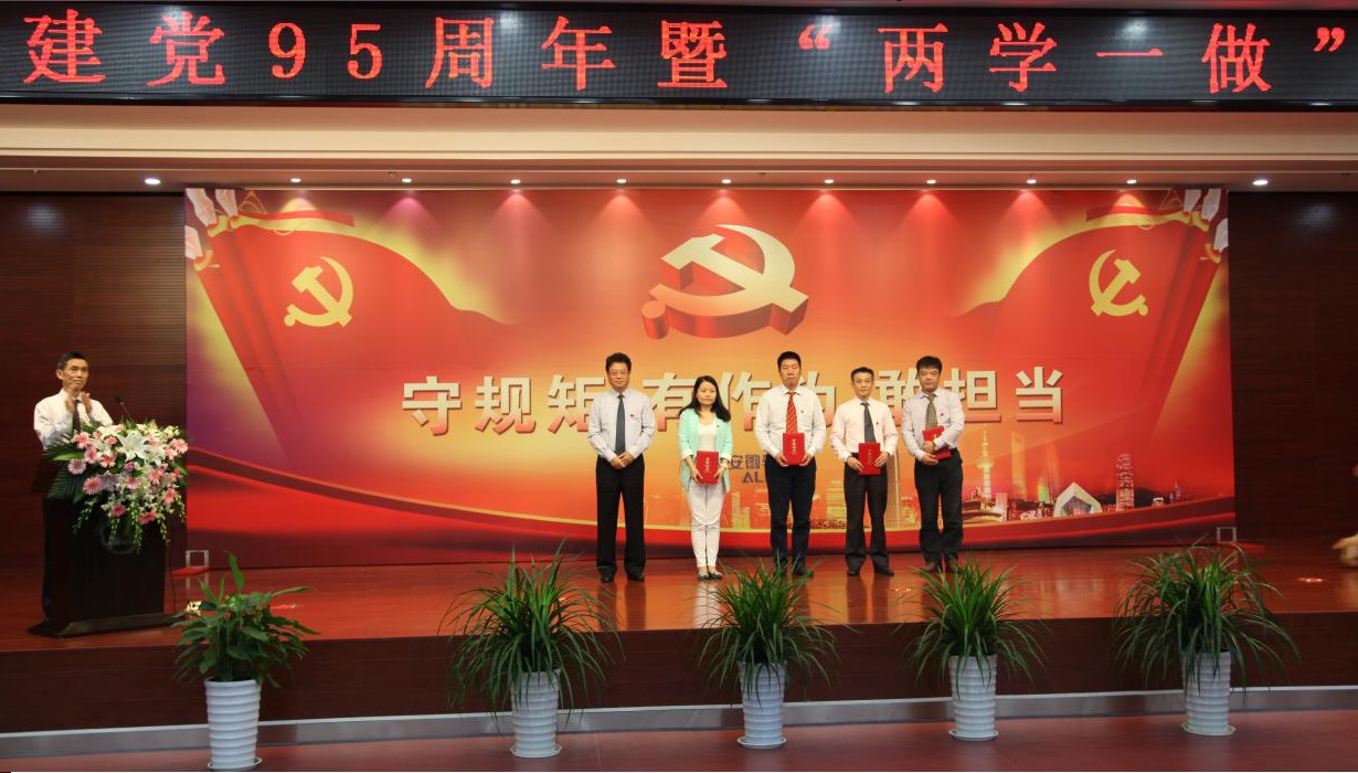 公司黨委副書記、副總裁方向東宣讀《關于2015-2016年度優秀黨員、優秀黨支部表彰獎勵的決定》,表彰了在開展科學發展觀、黨的先進性教育、“兩學一做”等學習教育工作,涌現出的成績顯著、表現優異、敢為人先、求真務實優秀共產黨員和先進黨支部,第一黨支部馬樹辰、第二黨支部俞成萍、第三黨支部蔣斌、第四黨支部潘錦衛、第五黨支部張媛媛、第六黨支部江隆興、第七黨支部薛曉麗、第八黨支部高小文8人榮獲“優秀共產黨員”,第九黨支部榮獲“先進黨支部”稱號。