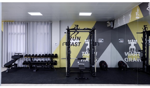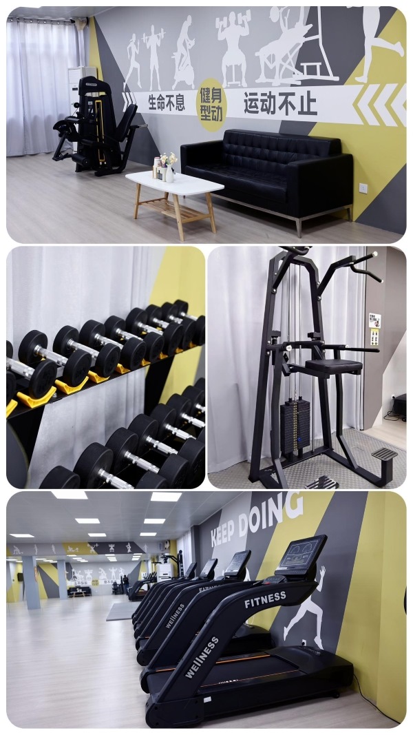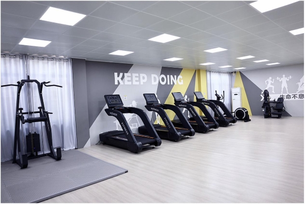 健身房內區域明亮寬敞、分布合理,分別設置了有氧、無氧及瑜伽區域,配有跑步機、橢圓儀、史密斯訓練架、引體向上訓練器、坐式伸曲腿一體機、啞鈴、可調式啞鈴凳和腹肌板等多種綜合性訓練器械,員工們可以根據身體條件和鍛煉需求選擇相應的健身項目。并配備了音響、更衣柜等輔助設備,制定了管理制度、明確了開放時間,為員工工作之余強身健體提供了強有力的支撐。